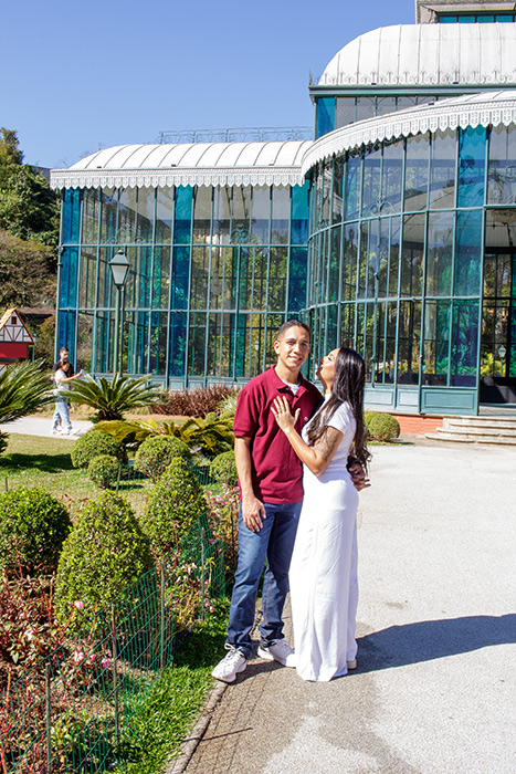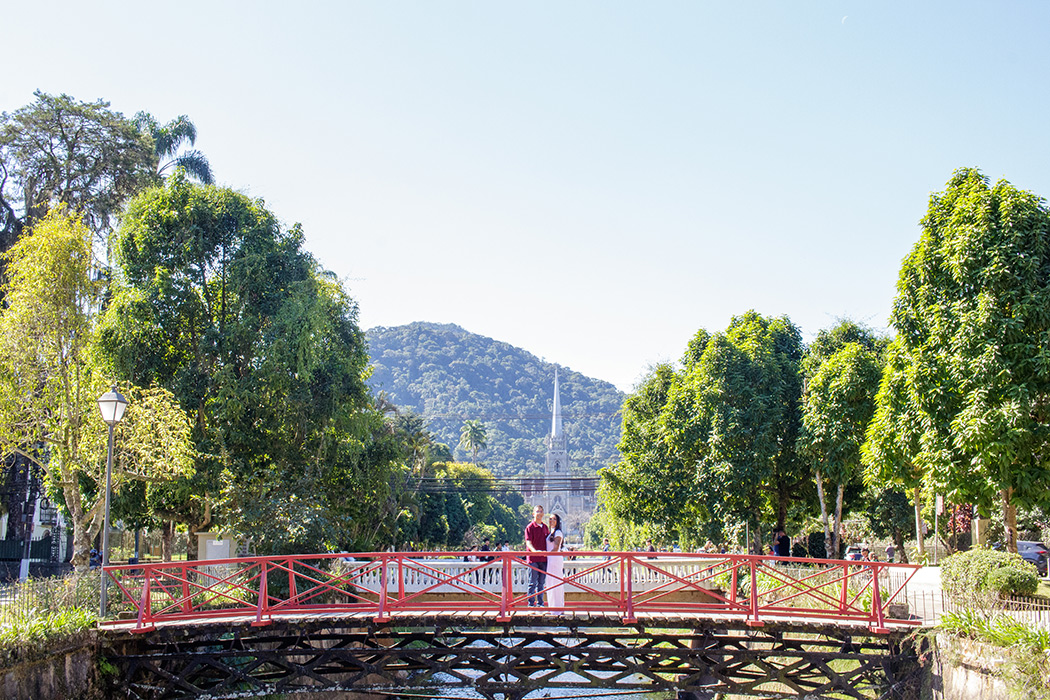 A sessão de fotos com o casal foi um passeio encantador por alguns dos cenários mais emblemáticos de Petrópolis. O Palácio de Cristal, com sua estrutura metálica e vistas exuberantes, e o Museu Imperial, com sua arquitetura grandiosa, proporcionaram o ambiente perfeito para registrar momentos de carinho e sintonia. A Praça da Liberdade, com seu charme acolhedor, e a Casa de Petrópolis, com sua imponência histórica, também foram cenários que deram vida às fotos, refletindo a essência de uma cidade rica em cultura e beleza. Foi, sem dúvida, um passeio agradável e cheio de significados, onde cada local trouxe um toque especial às imagens.